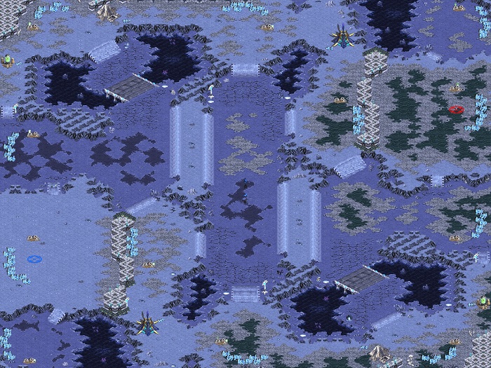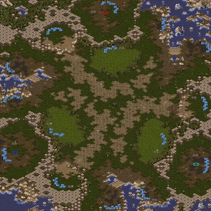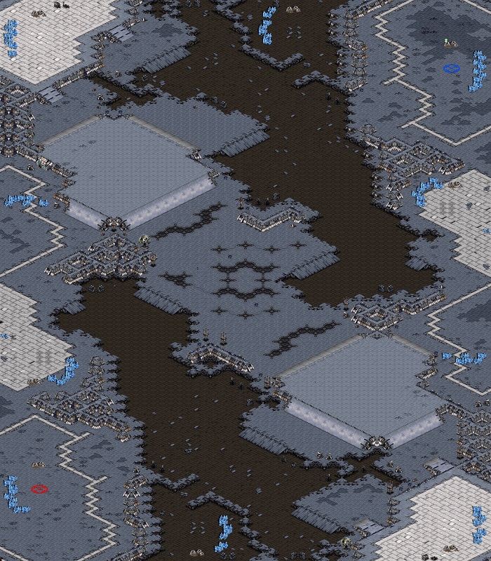 투혼(유지) : 국민맵. 앞마당과 제2멀티까진 수비가 용이해서 먹기가 쉽고, 이후엔 중앙 평지를 거치게 되어 있다. 먹을만큼 먹은 다음 중앙에서 제대로 한 판 붙어보자는 구도.